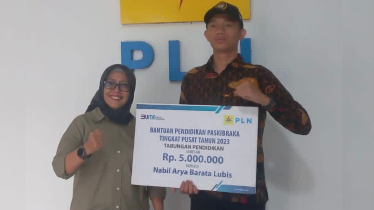 InfraSumut.com – Padangsidimpuan. Nabil Arya Barata Lubis, Paskibra Nasional asal Kabupaten Mandailing Natal (Madina), Provinsi Sumatera Utara, menerima bantuan tabungan Pendidikan dari Perusahaan Listrik Negara (PLN) Unit Pelayanan Pelanggan (UP3) Padangsidimpuan, Rabu (18/10/2023).