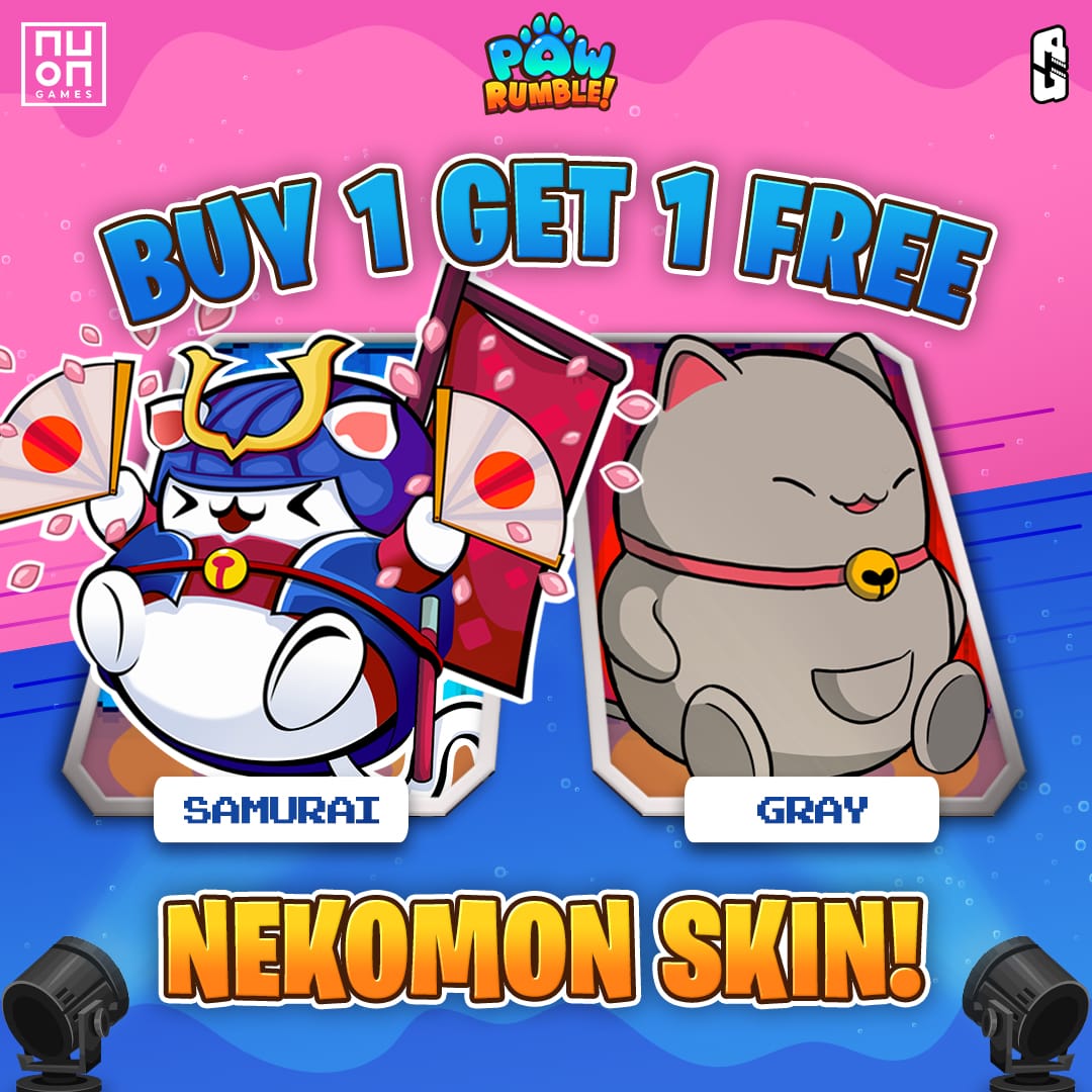 Untuk merayakan 1 juta unduhan secara global, Paw Rumble mengadakan promo Buy 1 Get 1 Nekomon Skin untuk seluruh pemain Paw Rumble yang berlangsung selama 21 Agustus hingga 7 September 2023.