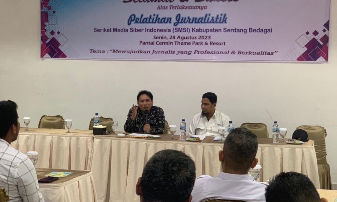 Sebagaimana diungkapkan Ketua Forum Pemred SMSI Sumut, Khairul Muslim, saat menjadi narasumber pada Pelatihan Jurnalistik SMSI Kabupaten Serdang Bedagai, di Theme Park & Resort, Kecamatan Pantai Cermin, Senin (28/08/2023).