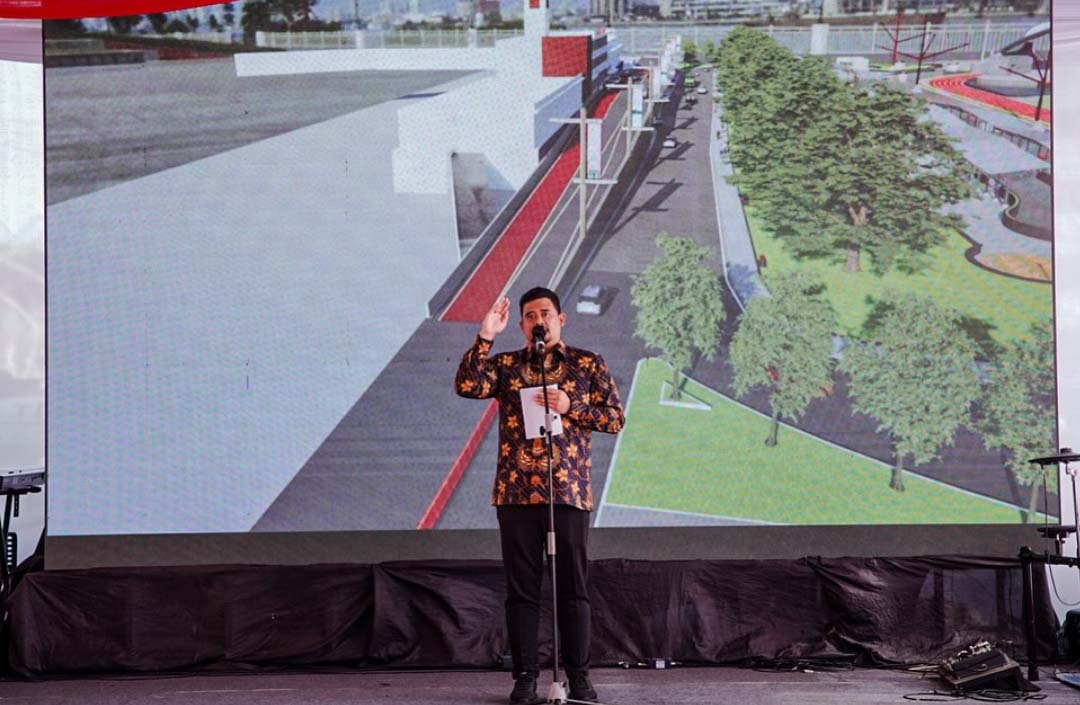 Wali Kota Medan Bobby Nasution meresmikan dimulainya pembangunan overpass Jalan Stasiun Medan. (istimewa)