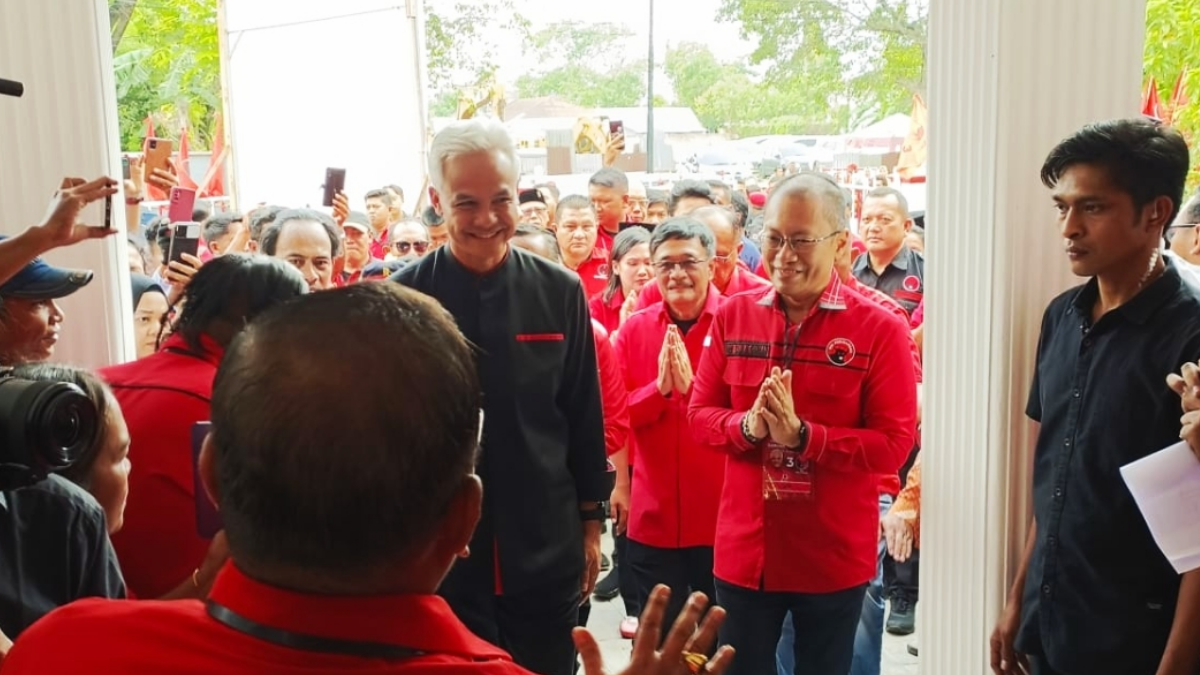 Didampingi Ketua PDI Perjuangan Sumut, Rapidin Simbolon. Ganjar Pranowo mengungkapkan bahwa kemenangan dirinya di Pilpres 2024, ada di mesin partai pendukung dan relawan. Sehingga harus ada kerja sama dan gotong royong meraih kemenangan tersebut.