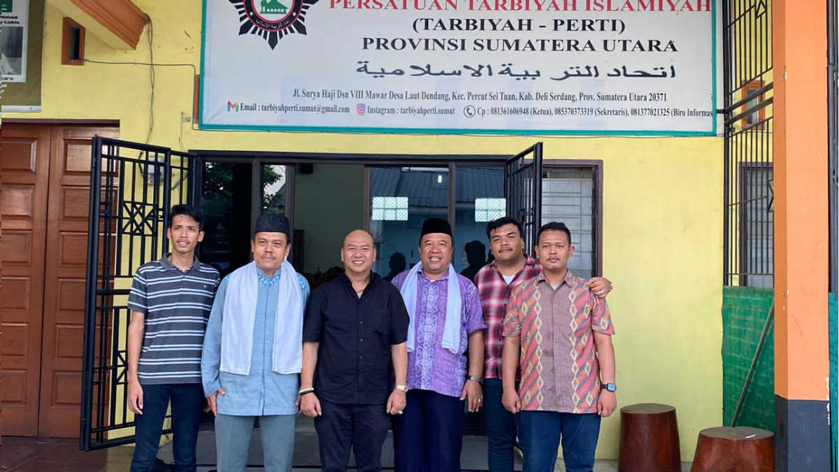 InfraSumut.com – Deli Serdang. Bakal Calon Gubernur Sumatera Utara, Dr Nikson Nababan MSi, disambut Sekjen Pengurus Daerah Persatuan Tarbiyah Islamiyah (PERTI) Sumut, Dr HM Arfan Daulay SAg MA, di Sekretariat Jalan Surya Haji Desa Laut Dendang, Kecamatan Percut Sei Tuan, Deli Serdang, Senin (20/5/2024).