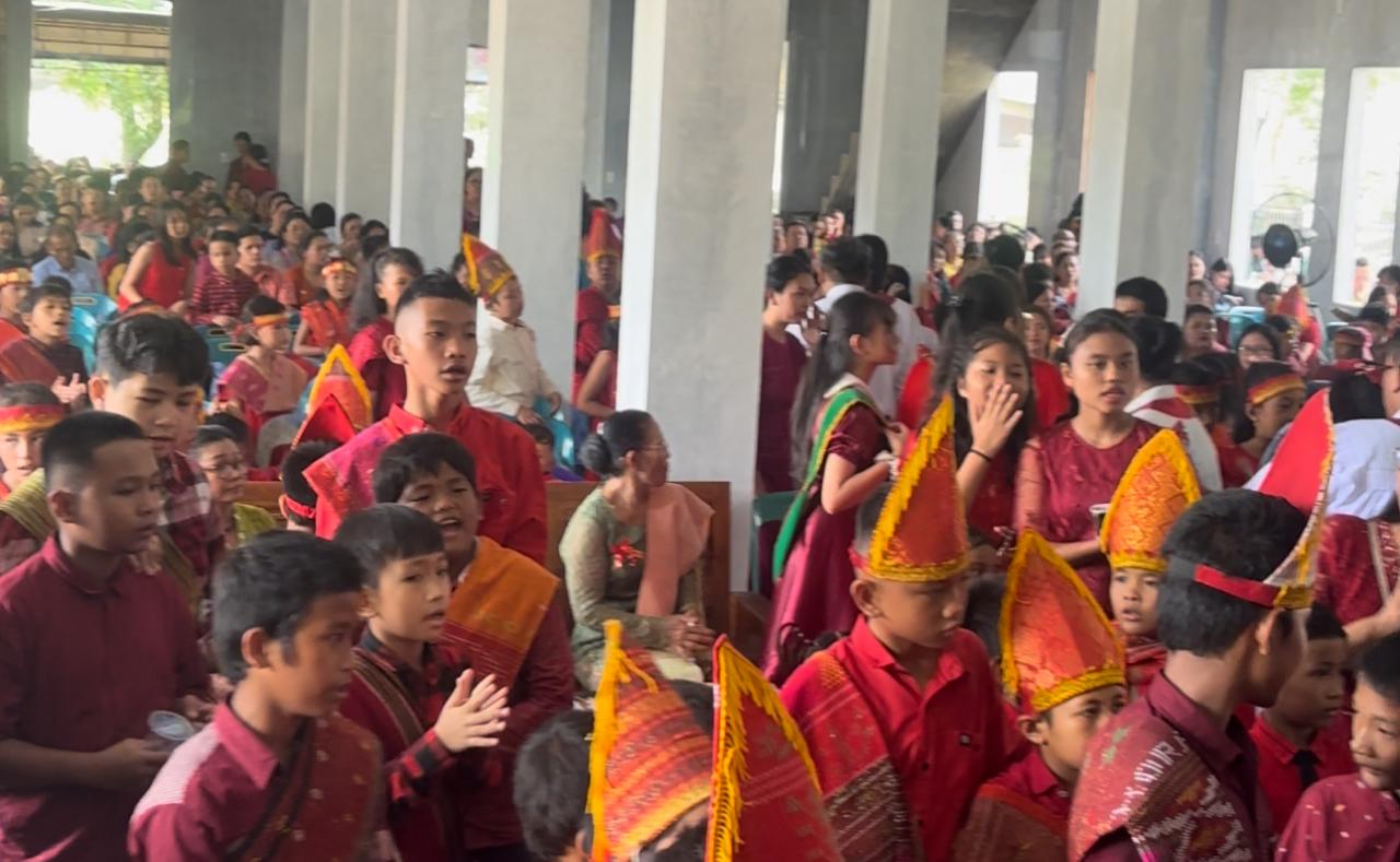 Pesta Pemindahan Peribadahan Anak Sekolah Minggu HKBP Tapian Nauli Sunggal di Gedung Sekolah Minggu yang baru, Minggu (23/6/2024).