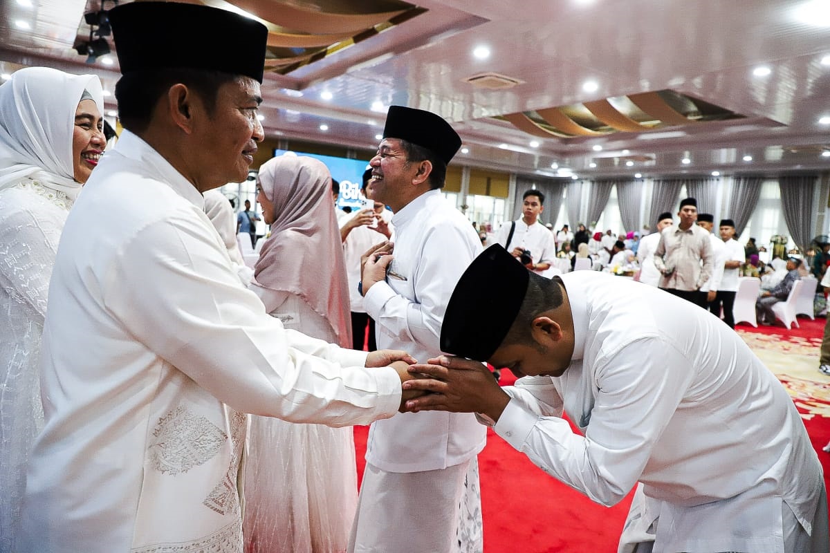 Sambil berjabat tangan dengan para pangunjung, Pj Gubsu Hassanudin mengucapkan selamat Idulfitri, mohon maaf lahir dan batin. “Mari saling memaafkan,” ujar Hassanudin.