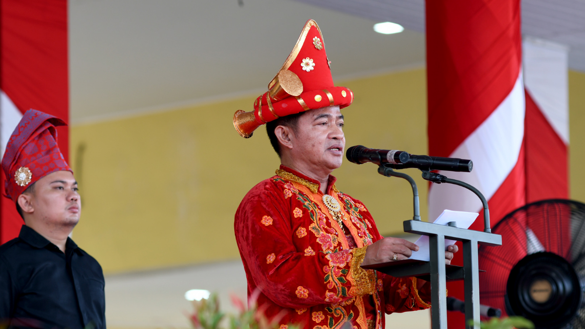 Pj Gubsu Hassanudin memimpin upacara peringatan Hari Lahir Pancasila di Lapangan Astaka, Jalan Pancing, Sabtu (1/6/2024). (istimewa)