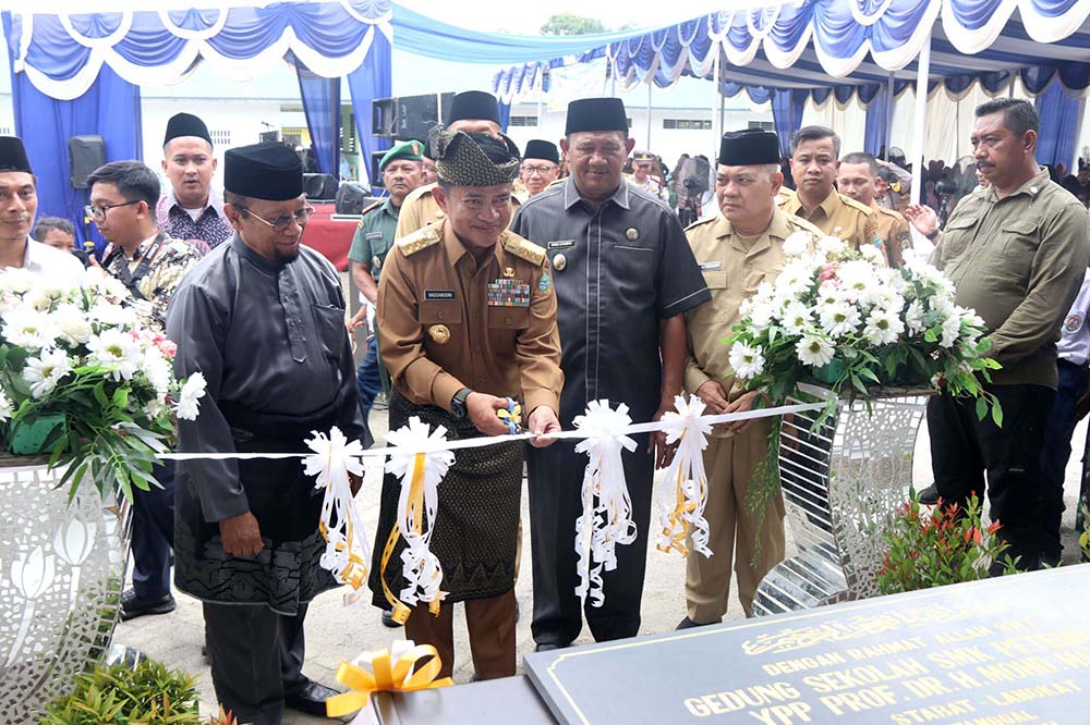Pj Gubsu Hassanudin meresmikan SMK Peternakan Yayasan Pembangunan Pendidikan (YPP) Prof Dr Mohd Hatta di Stabat, Langkat, Selasa (19/09/2023). (istimewa)
