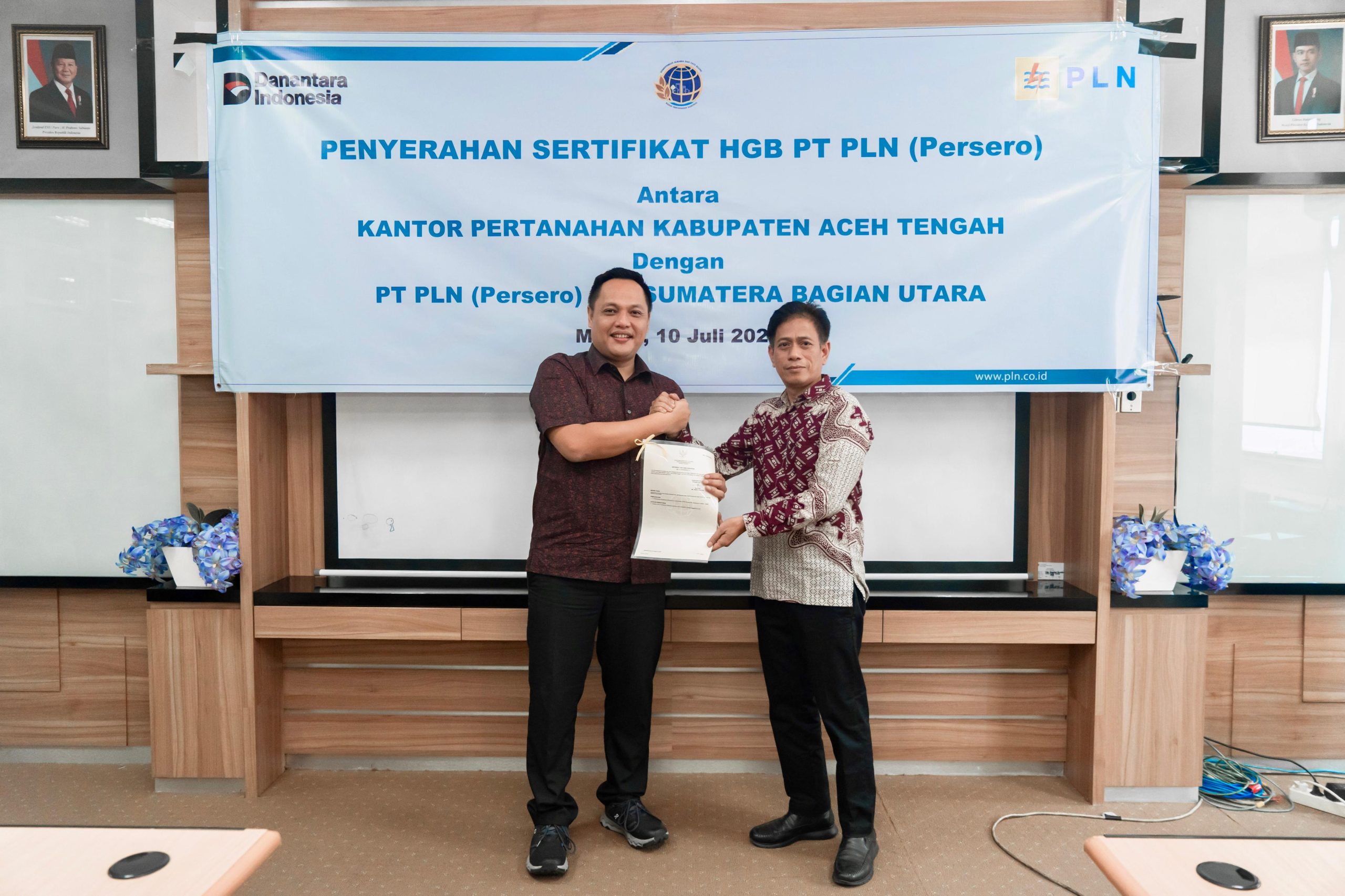 Penyerahan dilakukan langsung oleh Kepala Kantor Pertanahan Aceh Tengah Heriansyah kepada Senior Manager Pertanahan, Perizinan & Komunikasi PLN UIP SBU, Alfredo Pakpahan, Kamis (10/7/2025).