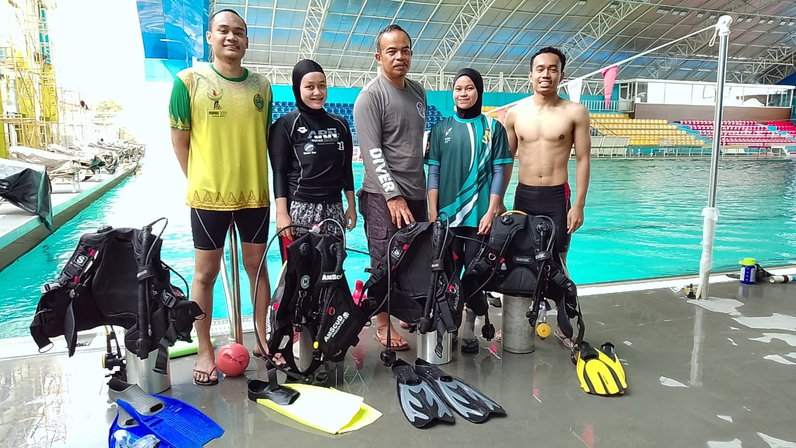 Sementara itu, untuk nomor selam kolam, atlet yang bertanding adalah Dimas Andrianto, Arkansyah Purba, Rifki Maulana Pasaribu, Vany Nove Tri Audiva, Andindia Rahimah, Resi Dwi Ananda, dan Melisa Humairah Lubis.