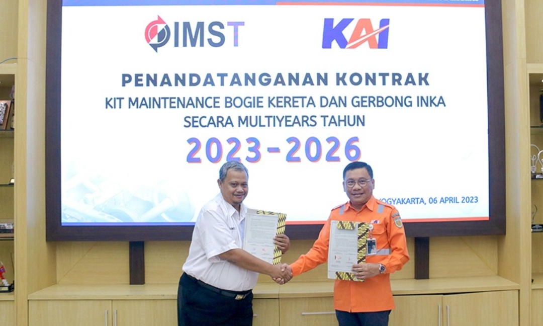 InfraSumut.com – Yogyakarta. PT IMST, Cucu perusahaan PT INKA (Persero), menandatangani kontrak dengan dan PT KAI (Persero), yakni pengadaan kit maintenance bogie kereta dan gerbong PT INKA (Persero) secara multiyears tahun 2023-2026.