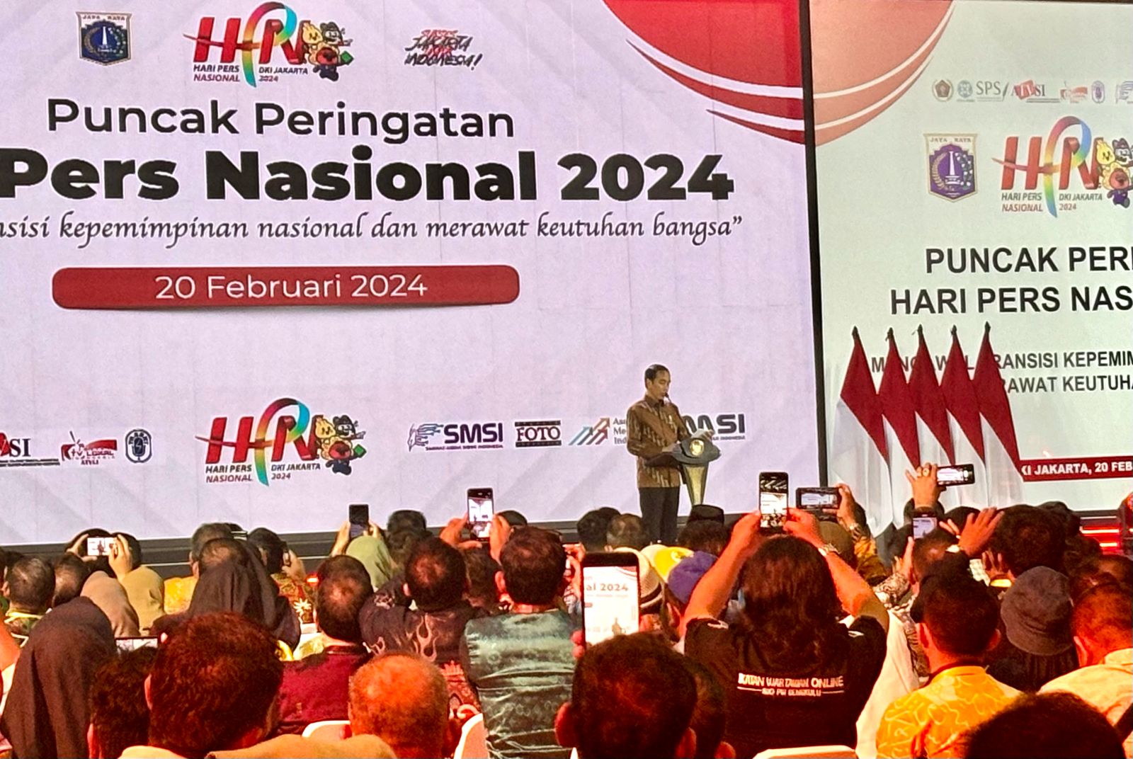 Presiden Jokowi resmi mengumumkan terbitnya Perpres Publisher Right pada puncak Perayaan HPN 2024 di Jakarta, Selasa (20/02/2024). (istimewa)