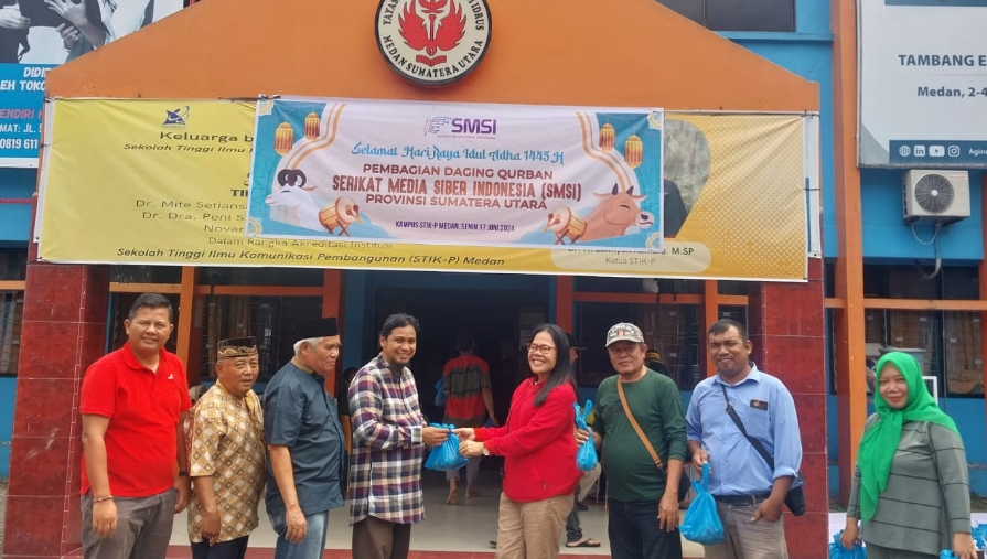 “Alhamdulillah, SMSI Sumut dan STIK-P Medan kembali bekerja sama menyembelih hewan qurban dalam rangka Hari Raya Idul Adha 1445 H. Semoga kegiatan ini diridhoi Allah SWT dan dilimpahkan rezeki serta kesehatan bagi yang berqurban,” kata Ketua STIK-P Medan, Dr H Sakhyan Asmara MSP.
