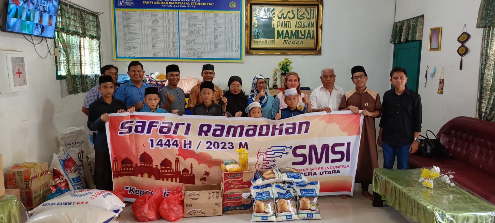 Serikat Media Siber Indonesia (SMSI) Provinsi Sumatera Utara ikut ambil bagian memberikan kebahagian para anak yatim piatu melalui aksi Safari Ramadan 1444 H/2023.