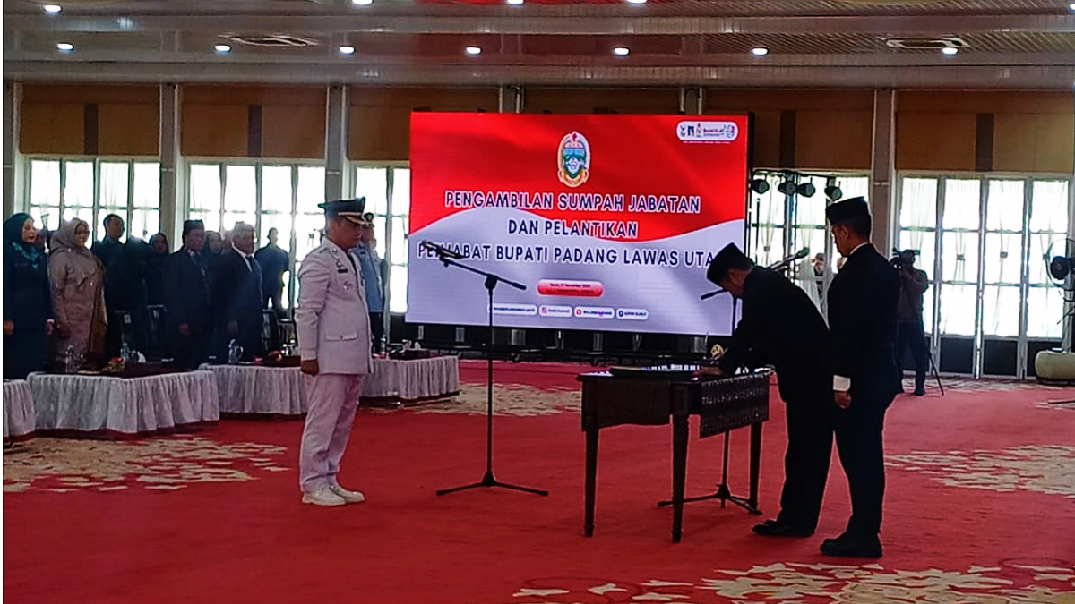 InfraSumut.com – Medan. Patuan Rahmat Syukur P Hasibuan resmi dilantik sebagai Penjabat (Pj) Bupati Padang Lawas Utara (Paluta) oleh Pj Gubernur Sumatera Utara, Hassanudin, di Aula Tengku Rizal Nurdin, Rumah Dinas Gubernur, Jalan Jenderal Sudirman Medan, Senin (27/11/2023) sore.