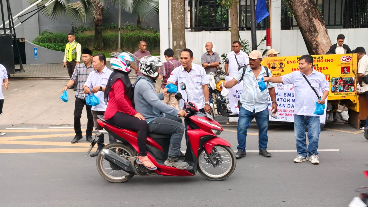 Kelompok masyarakat itu seperti driver online, penarik betor, penyapu jalan dan pengguna jalan yang melintas di Jalan Imam Bonjol Medan atau disamping Gedung DPRD Medan, Rabu (19/03/25). Kegiatan ini dilakukan mulai pukul 17.40 Wib sampai selesai.