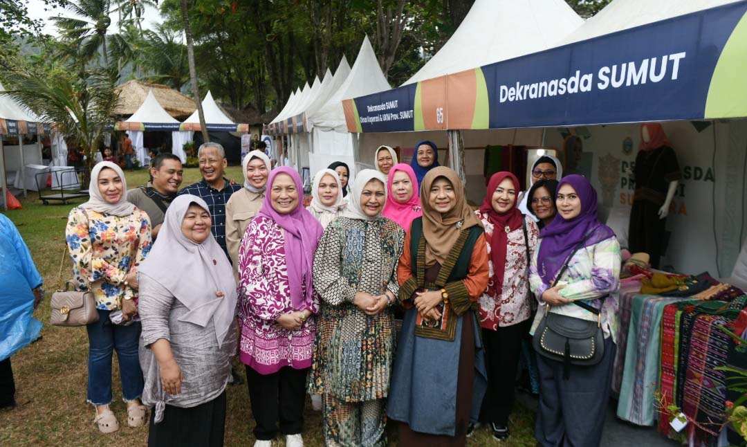 Di Stan Dekranasda Sumut, Nawal Lubis hadir bersama Ketua Dekranasda NTB Niken Widyawati Saptarini Zulkieflimansyah, didampingi Ketua Dharma Wanita Persatuan Sumut Dian Arief Trinugroho, dan Kadis Koperasi dan UKM Sumut Suherman.