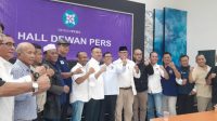 Hendry Ch Bangun mendaftar calon Ketum PWI di Hall Gedung Dewan Pers, Sabtu (23/8/2025). Baca Juga