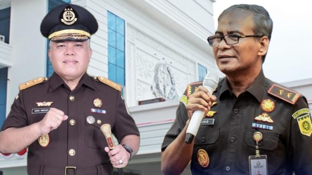 Harli Siregar (kiri) menjadi Inspektur III Jamwas Kejagung, sementara Muhibuddin promosi menjadi Kajati Sumut. Baca Juga