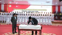 71 Paskibraka Sumut tahun 2025 dikukuhkan Gubernur Bobby Nasution, Jumat (15/8/2025). (istimewa) InfraSumut.com – Baca Juga