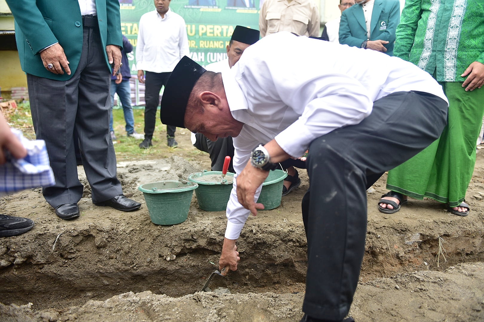 Hadir pada acara peletakan batu pertama ini Ketua PW Al-Jam’iyatul Washliyah Sumut, Deddi Iskandar Batubara, Dekan dan pengurus UNIVA serta pengurus Al-Jam’iyatul Washliyah. (riz)
