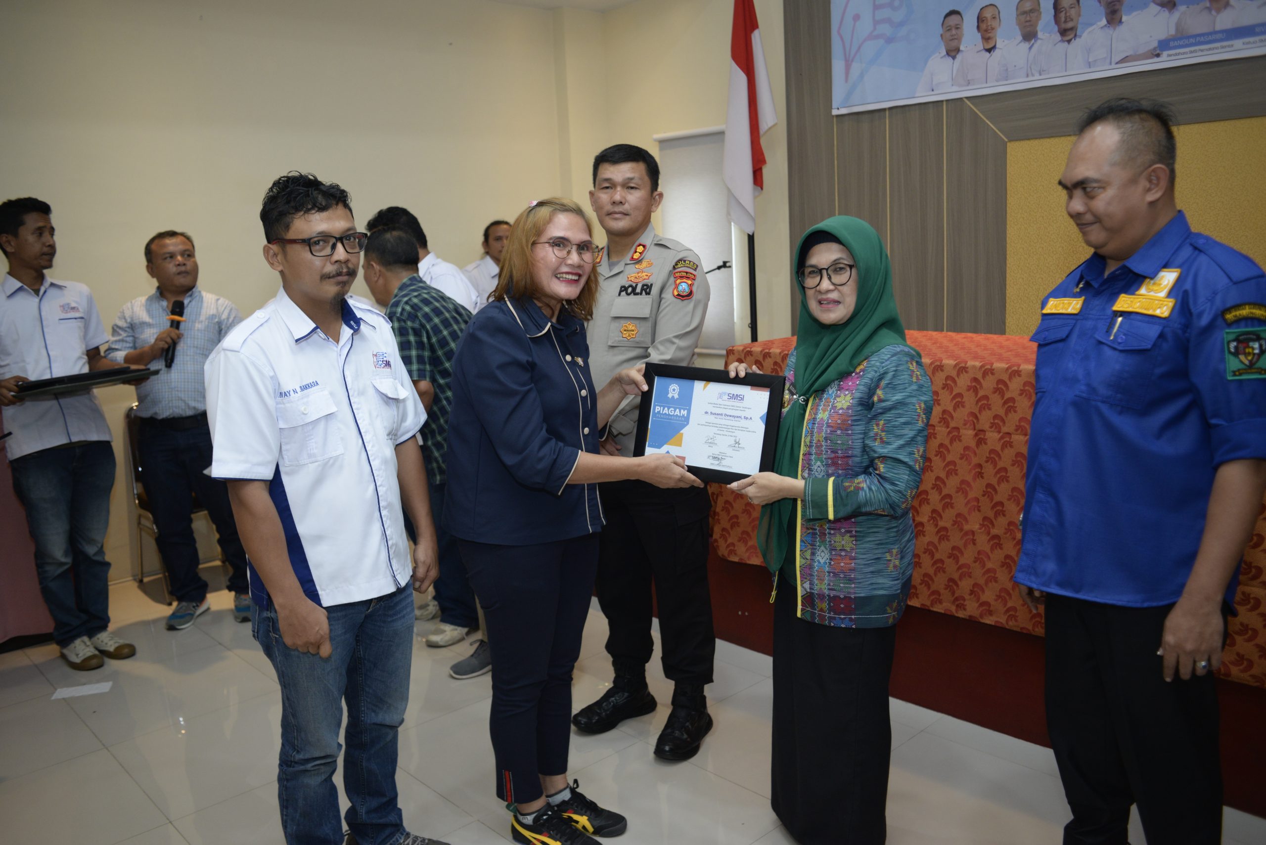 Wali Kota Pematang Siantar, dr Susanti Dewayani SpA, menerima penghargaan di acara Workshop dan Perayaan Hari Ulang Tahun (HUT) ke-6 Serikat Media Siber Indonesia (SMSI), di Toba Hall Hotel Batavia, Jalan Gereja Pematang Siantar, Kamis (25/05/2023).