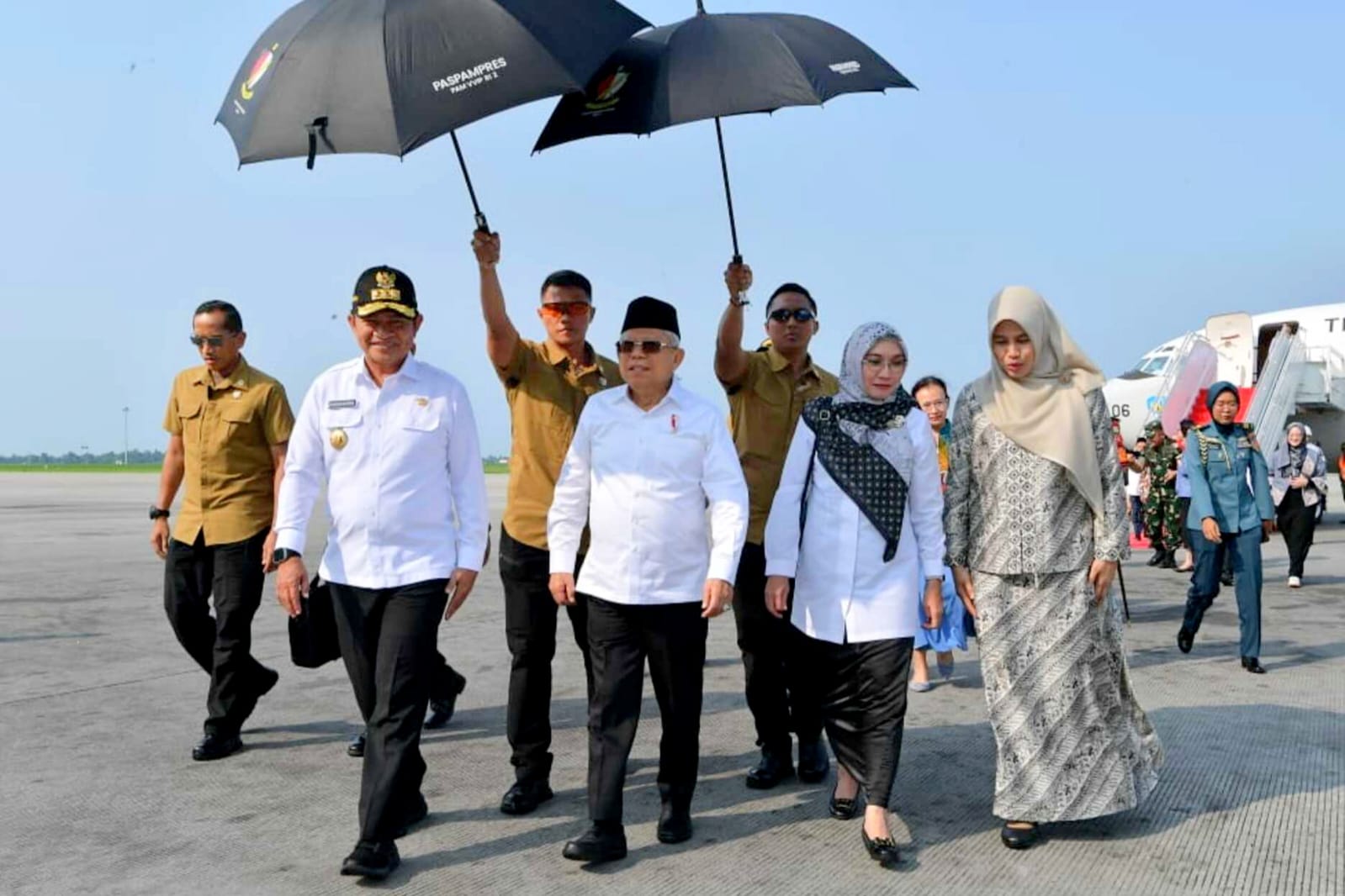 Wapres Ma’ruf Amin, bersama istri tiba di Bandar Udara Internasional Kualanamu, Kabupaten Deli Serdang, Rabu (18/10/2023) siang, menggunakan pesawat TNI Angkatan Udara.